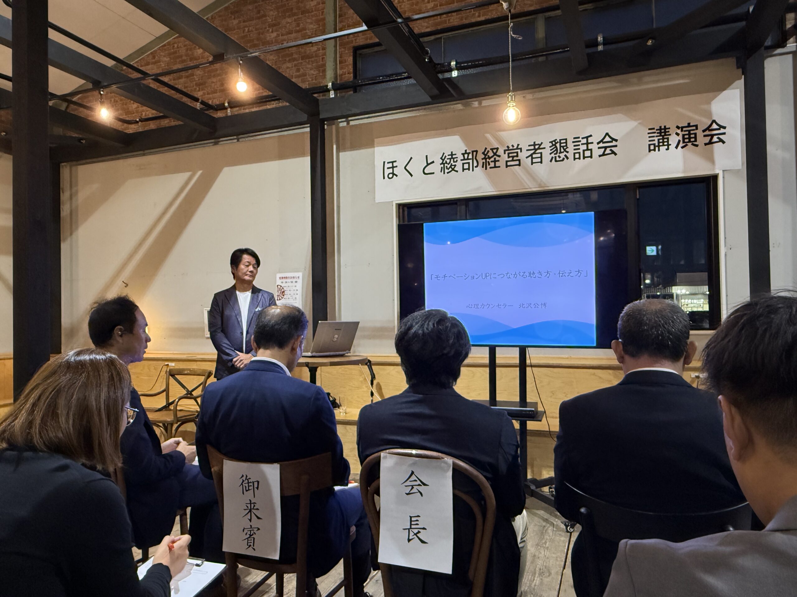 モチベーションアップに繋がる聴き方・伝え方について心理カウンセラー北沢公博氏の講演を聞かせて頂きました。